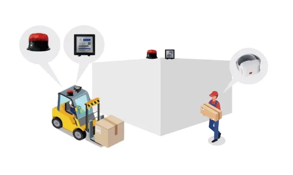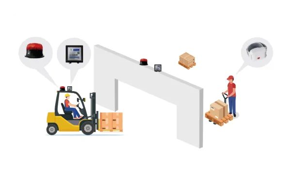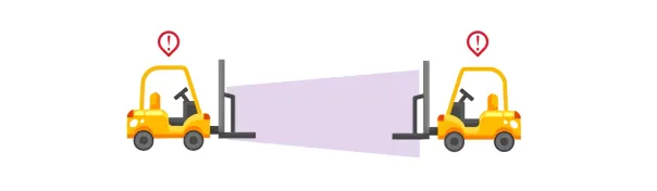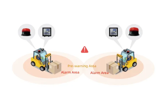 When a person approaches a pre-set danger zone around any vehicle, the system instantly issues dual alerts: a visual/audible warning on the forklift dashboard and vibration, sound or LED on the operator's tag or smart-watch, giving both sides time to react and avoid a collision. This keeps personnel safe and eliminates costly downtime.